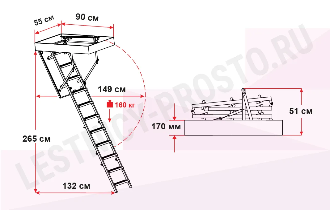 Чердачная лестница OMAN MINI POLAR 55×90 см, h-265 см