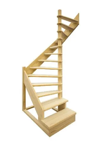 Удобная лестница на косоурах с поворотом на 90 градусов. Открытые ступени визуально облегчают конструкцию. Ограждения по всему маршу обеспечивают дополнительную безопасность и возможность декорирования. Монтаж осуществляется силами двух человек на объекте по указаниям, приведенным в паспорте на лестницу.