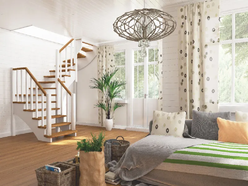 Базовый комплект включает в себя деревянные элементы лестницы и ограждения ;без какого-либо покрытия.