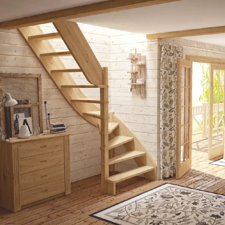 Базовый комплект включает в себя деревянные элементы лестницы без какого-либо покрытия.