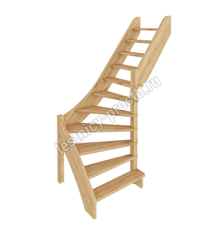 Базовый комплект включает в себя деревянные элементы лестницы без какого-либо покрытия.