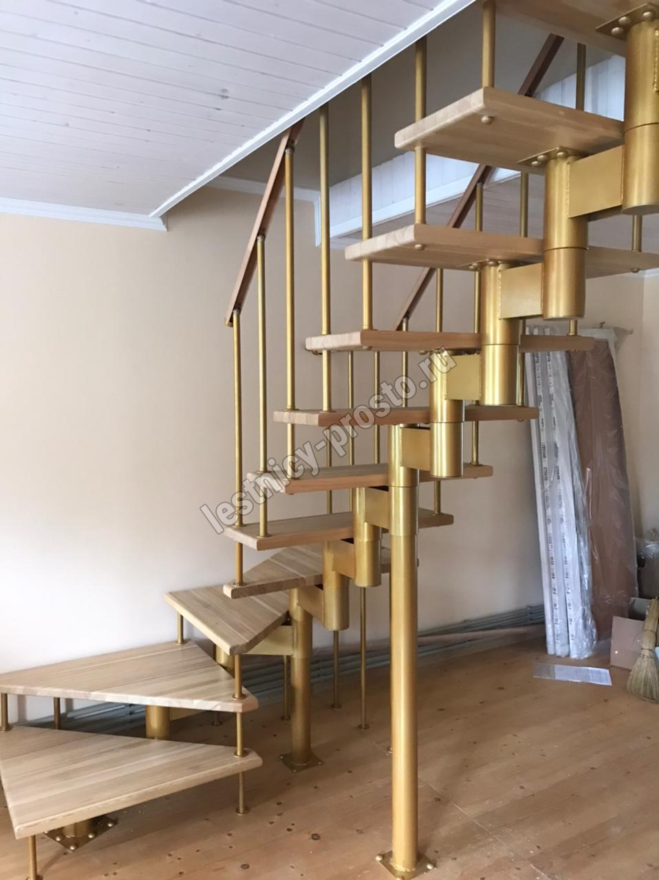 Лестница поставляется в разобранном виде. Модульная конструкция не сложная в сборке, хорошо подходит для самостоятельной установки. Если хотите сохранить время и силы - предлагаем заказать услугу монтажа лестницы нашими специалистами.
