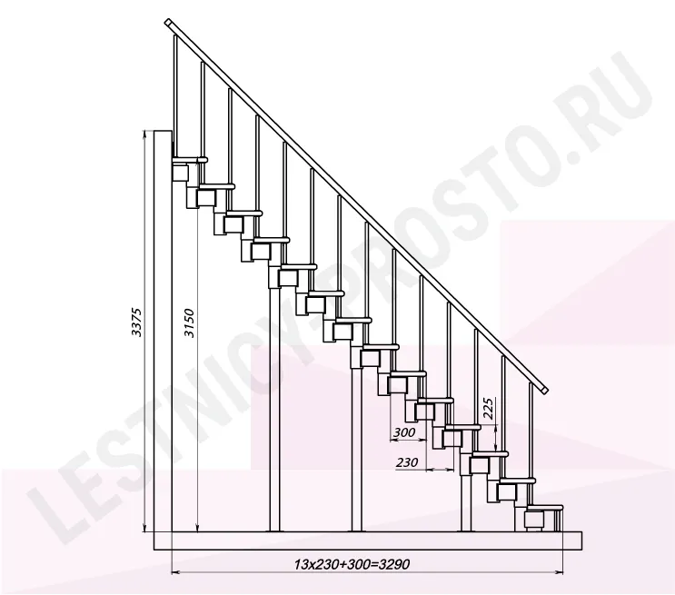 Схема и расчет указаны для шага 225 мм - позволяющего сэкономить бюджет и оптимизировать пространство.