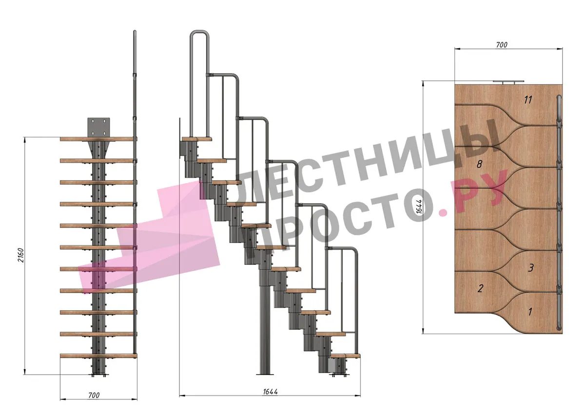 Лестница Prosto Urban Black гусиный шаг 700 мм/Ступени из берёзы мультиплекс