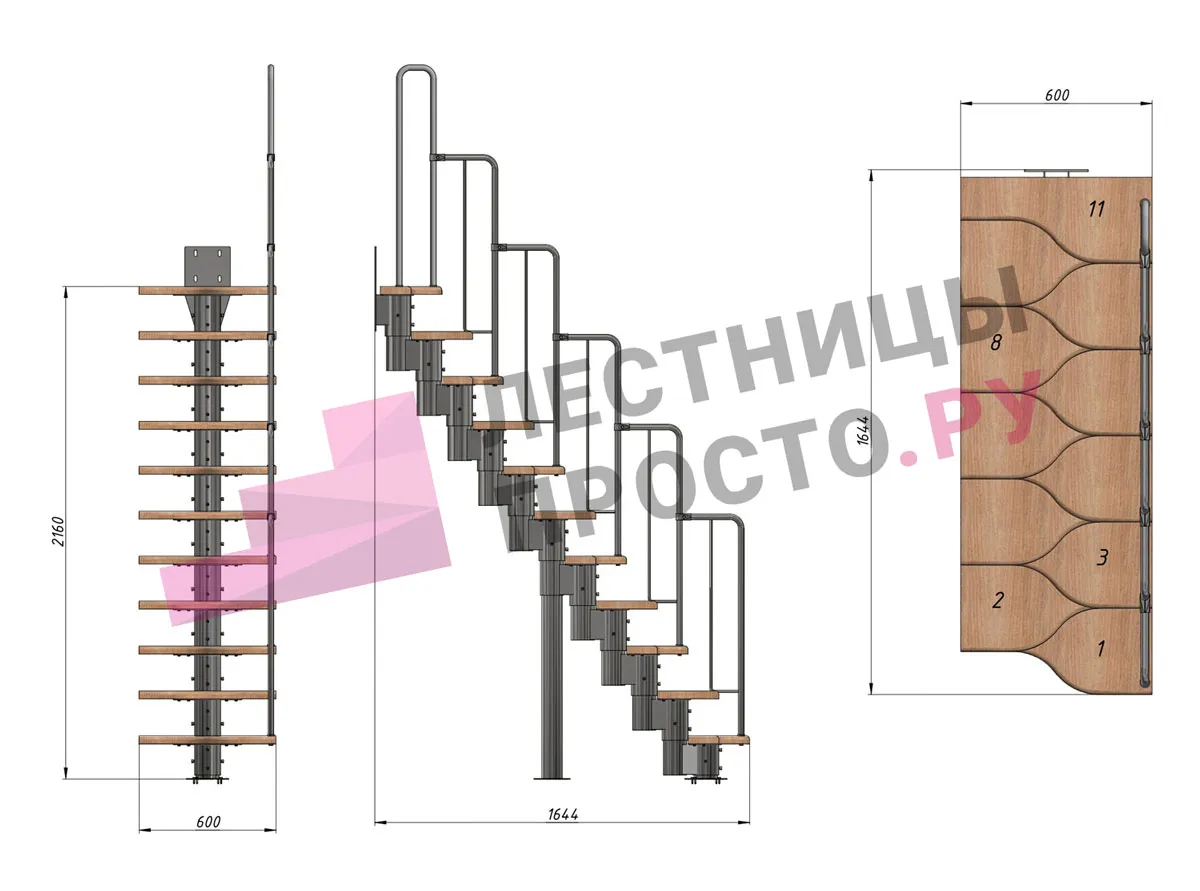 соответствует картинке, но вы не ограничены в его выборе. Лестницу можно приобрести и без ограждения, и с любым другим. Устанавливать на такую лестницу можно почти всё, начиная от классических деревянных балясин и заканчивая эксклюзивными коваными изделиями.