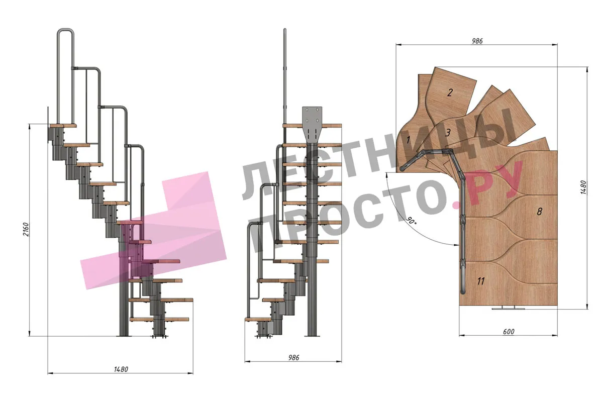 - Регулируемый по высоте в пределах 180-240 мм модуль. Большой диаметр и толщина металла деталей обеспечивают жесткость и прочность конструкции. Регулировка каждого модуля по высоте позволяет легко приспособить лестницу под ваше помещение.