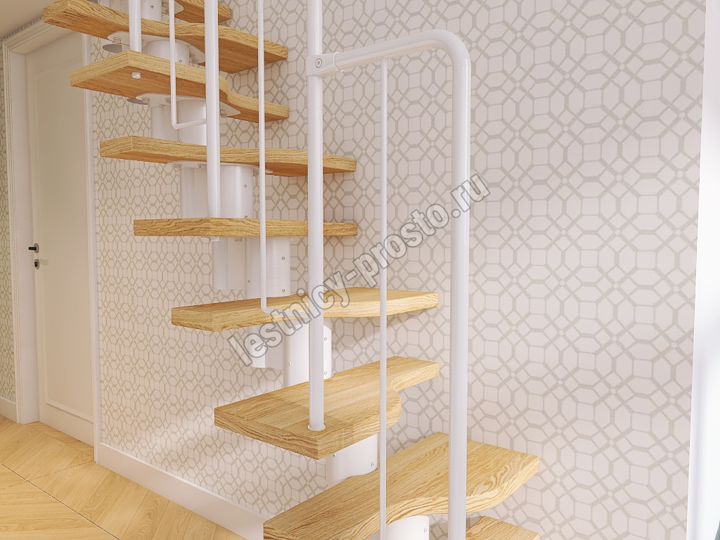 Лестница Prosto Urban White гусиный шаг 700 мм, h234-336 см (13 ступеней), дуб