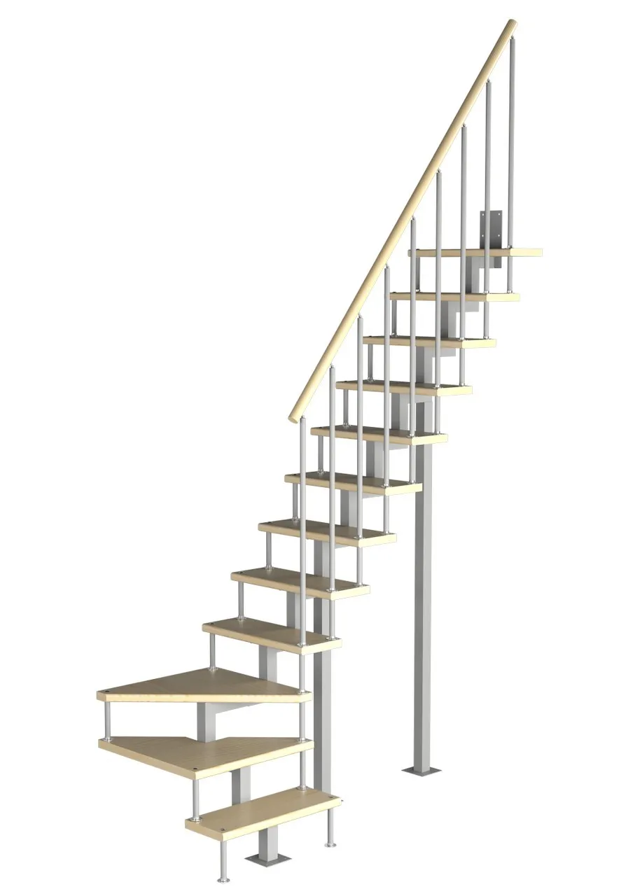 Лестницу Montreal Style можно монтировать в круглые и квадратные проемы. Ступени изготовлены из бука по технологии MULTIPLEX, покрыты износостойким защитным лаком.