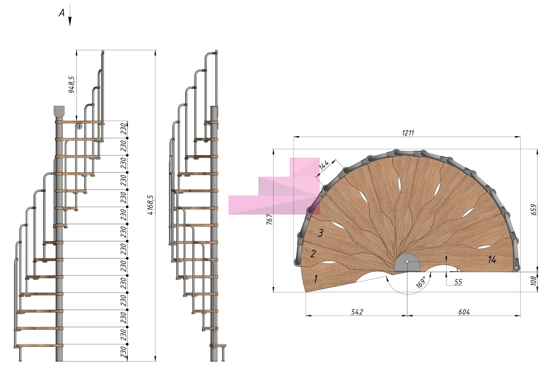 | Винтовая лестница PROSTO MINI белая, 60×120 см, h322-345 см |