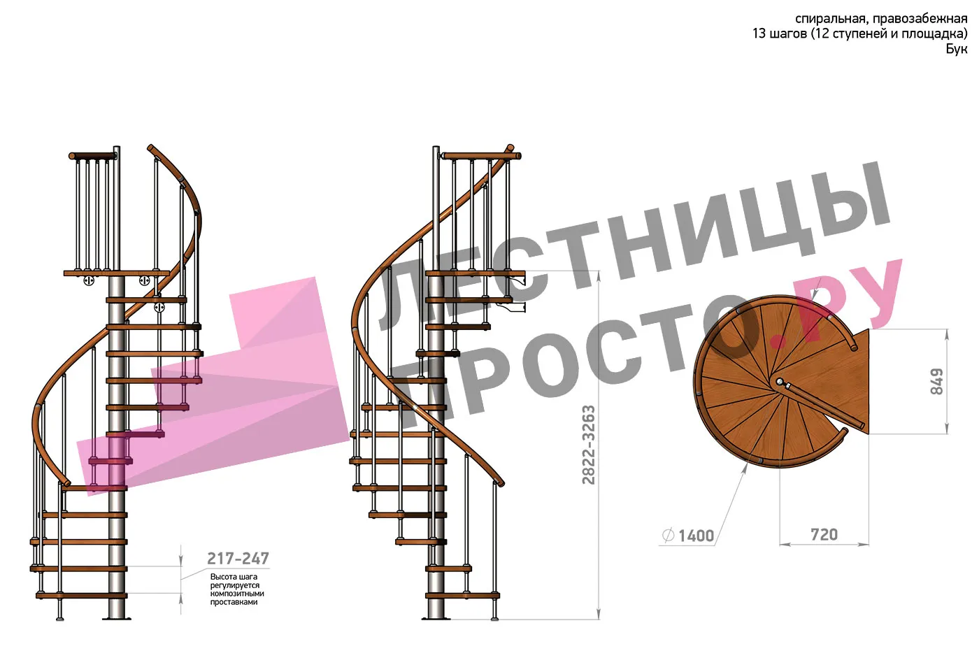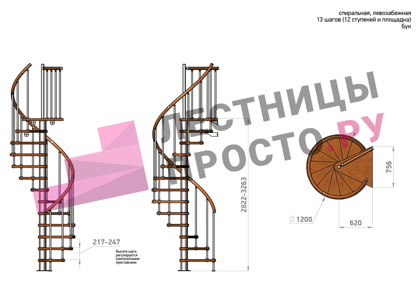 Высота ступеней регулируется с шагом 3 мм. в пределах 217-247 мм., благодаря чему, лестница прекрасно подгоняется под необходимую высоту.