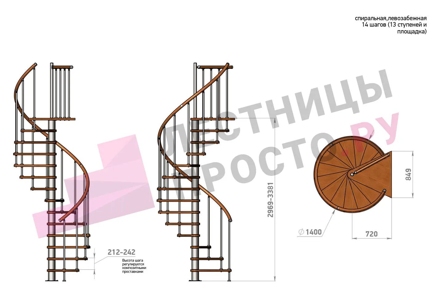 Винтовая лестница Prosto Spiral Black/Высота 2969 - 3381 мм