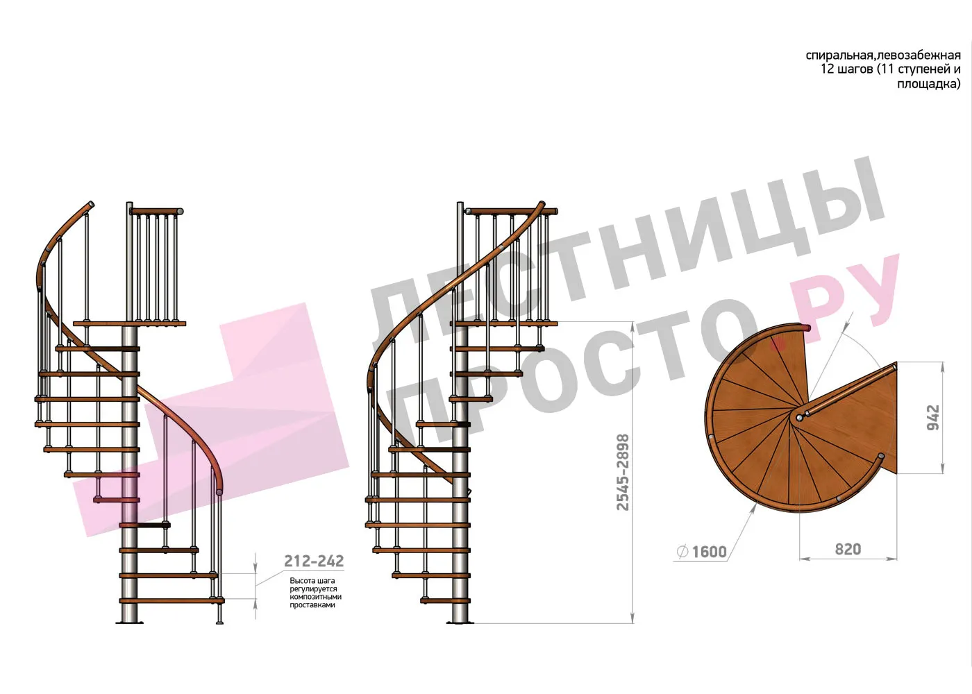 | Винтовая лестница Prosto Spiral White D160см, h254.5-289.8 см |