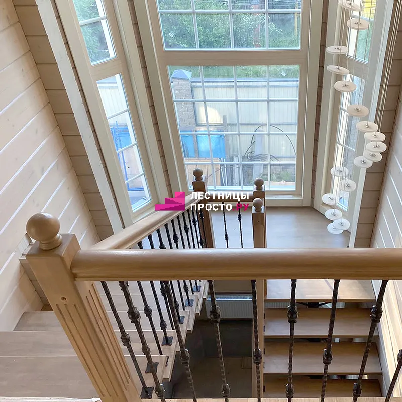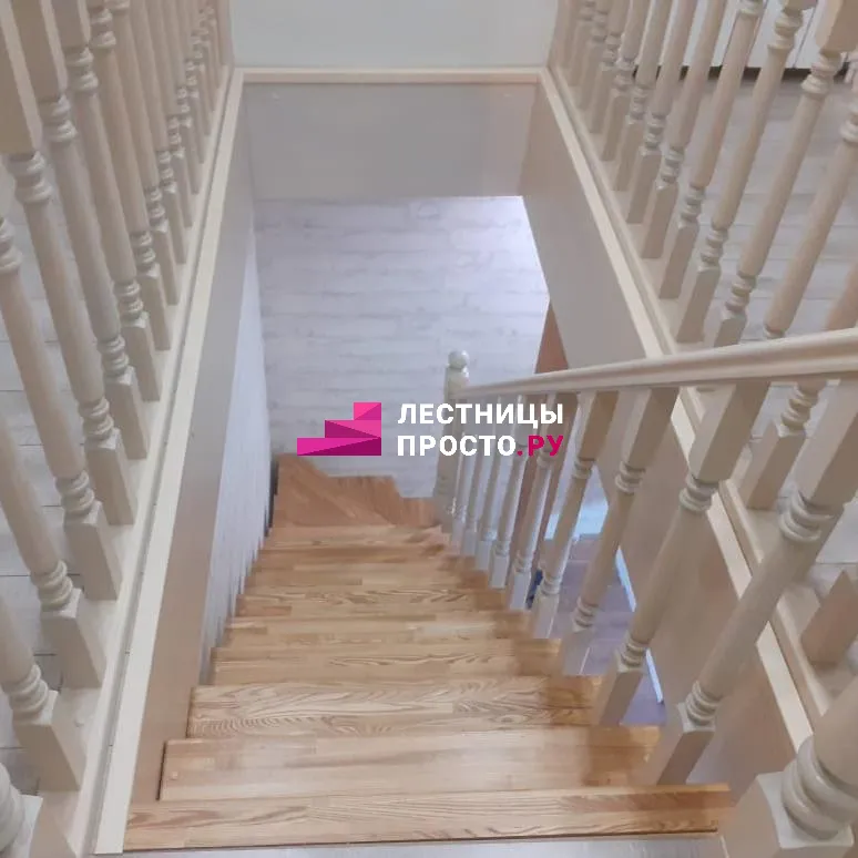 Лестница сосна-бук с двумя площадками ЛГ 200